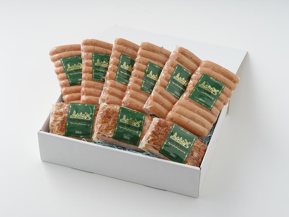定番のあらびきウインナーや素材にこだわった黒豚ウインナー、満足度MAXの濃厚チーズ入りミートローフをセットにしました。
