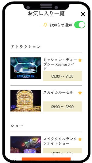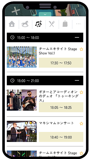 쇼의 개최 시간이 맵상이나 일람으로 한눈에 알 수 있습니다.